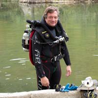 James Brown, USA  James Brown is one of the world's foremost sump divers. In the late 1980s he migrated from wreck diving to exploring tight side-mount underwater tunnels in New York state with open circuit SCUBA. In 1990, James became the defacto lead test diver for the Cis-Lunar series of rebreathers and he has logged hundreds of hours on five generations of closed-circuit diving equipment, including the transition to the Poseidon Mk6. He was a participant on the dive team during the 1994 National Geographic Society expedition to San Agustín, Huautla, and is a major character in the book Beyond the Deep. He was a lead diving member of the 1999 Wakulla 2 Expedition which created the world's first 3D cave map. In 2006, he conducted the first solo exploration of Sump 2 in J2 and was the discoverer of Sump 3. In 2009, he was a member of the support dive team that initially set up Camp 4 in J2. He is a member of the 2013 J2 lead diving team. |