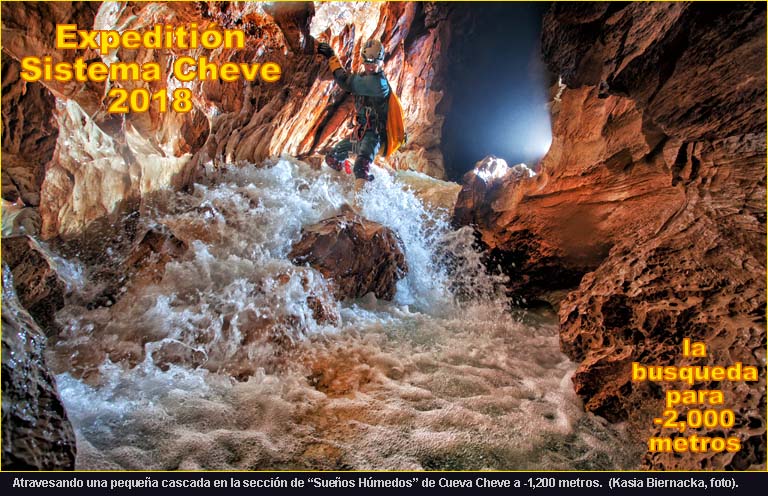 Hemos reunido un equipo de 58 personas de 8 países para el regreso a Cheve y al CL6 en 2018. El equipo de avanzada saldrá de Texas el 26 de febrero de 2018 con el plan de establecer un campamento base cerca de la entrada de Juniper / CL6 a la mitad de la primera semana de marzo. Para el mes siguiente, la mayoría del equipo trabajará en el armado, exploración y topografía de la cueva nueva. Hacia fines de marzo, un pequeño contingente del equipo montará Cueva Cheve y, a principios de abril, comenzará a trabajar desde el Campamento 3 en el nuevo túnel descubierto en 2017. A diferencia de la expedición del 2017, este nuevo pasaje no require de equipo especializado de buceo por no haber agua de por medio, lo que acelerará en gran medida el trabajo de exploración y reducirá la cantidad y el peso del equipo que debe transportarse bajo tierra.